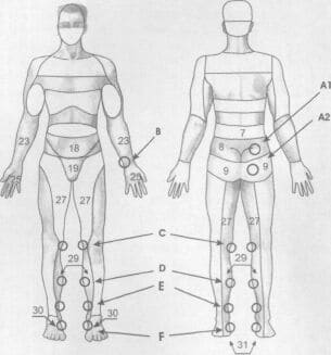 It is effective to combine the static applicators with the rollers or the small applicators for the applications to the low abdomen, as well as to wear the applicators on the zones A, B C, D, E, F in different combinations for a long time (1-3 hours).