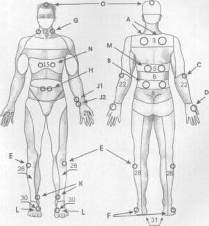 For the abovementioned pathology in the zones A, B, C, D, E, F, G, H, L-M, O it is possible to use long 1-2 hours stimulation, applying 2-4 applicators by turns or crosswise (one-two to the left, one-two to the right).